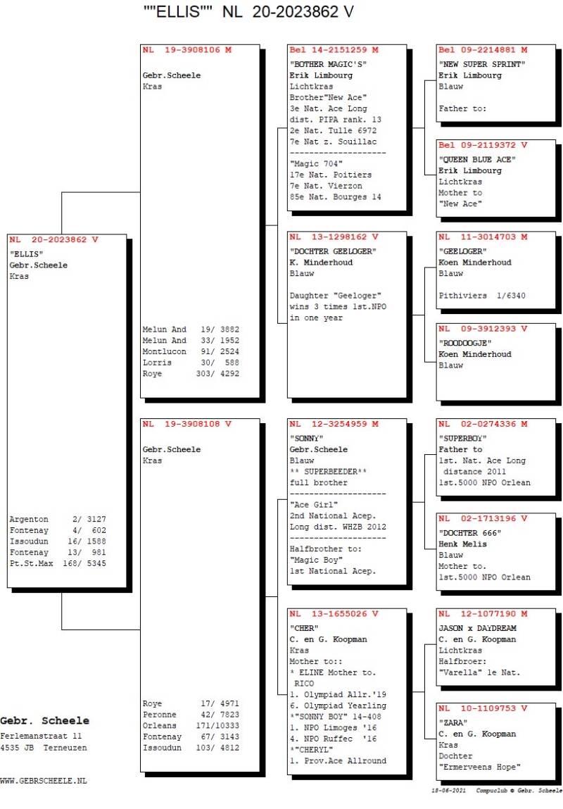 Onze eerste duif was een zusje van ''Rico'' en kwam daarmee dus uit Tygo x Eline. Rico was o.a. 1-2-3-3-3-5-6-6 Nationale asduif in verschillende competities.